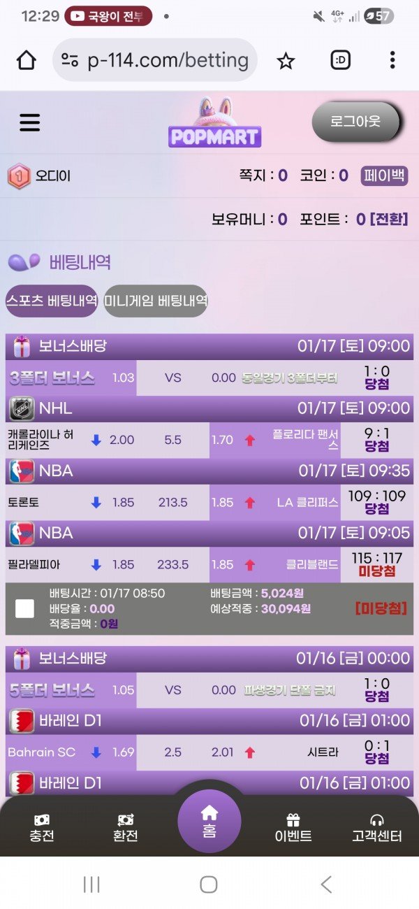 일단 팝마트 주소는 https://www.p-114.com/betting/list.svc?menu_type=sports 입니다
