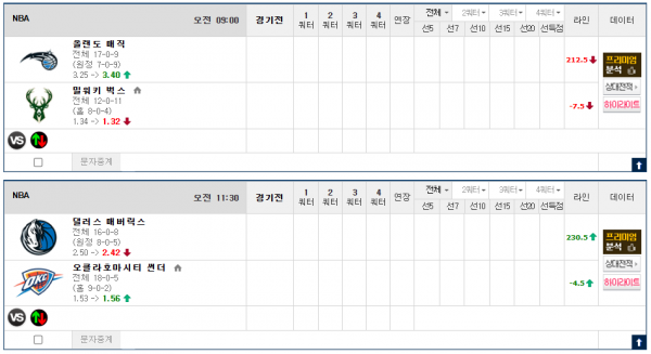 1. 09:00 밀워키 vs 올랜도