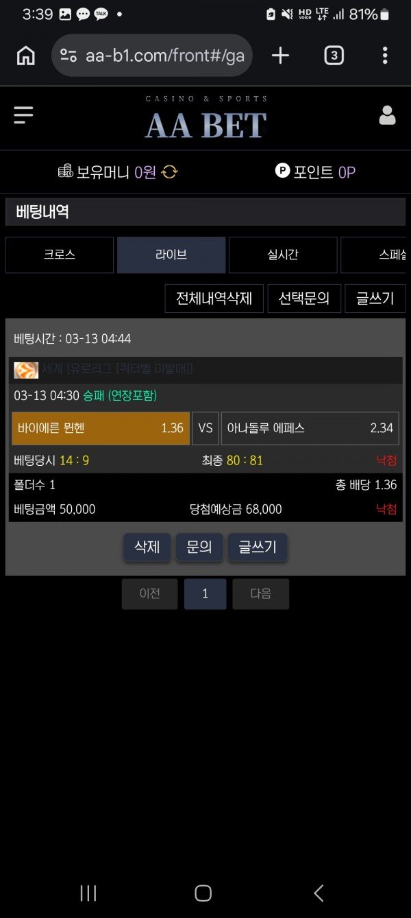 에이에이벳 후기 작성자 정보 유리다쪽지보내기 메일보내기 자기소개 아이디로 검색 전체게시물쪽지보내기 메일보내기 자기소개 아이디로 검색 전체게시물 작성 작성일 2026.03.23 03:54 컨텐츠 정보 2 조회 목록 본문 3월 13일 새로운 놀이터 에이에이벳에 가입하였고 가입하고 승인되는게 매우 빨랐다는점에서 매우 만족하였다 편리한접근성과다양한게임들과 빠른입금과 다양한 이벤트들이 진행중이였고 텔레그램 고객센터도 따로있었다 5 충하고 인플레이 유로 리그 농구 뮌헨 경기를 배팅하였다 1쿼터에 5점 앞서고있어서 배당도 낫배드라서 4쿼터 1분 종료 직전까지 리드하다가 마지막 상대공격 1초에 3점 맞고 미적 너무 아쉽다 ㅠ.ㅠ 관련자료 이전 블랙 후기요 작성일 2026.03.23 05:37 다음 토토그램(배너입점문의) 사기꾼 조심 작성일 2026.03.23 03:09 댓글 0 등록된 댓글이 없습니다. Select File Upload File 목록