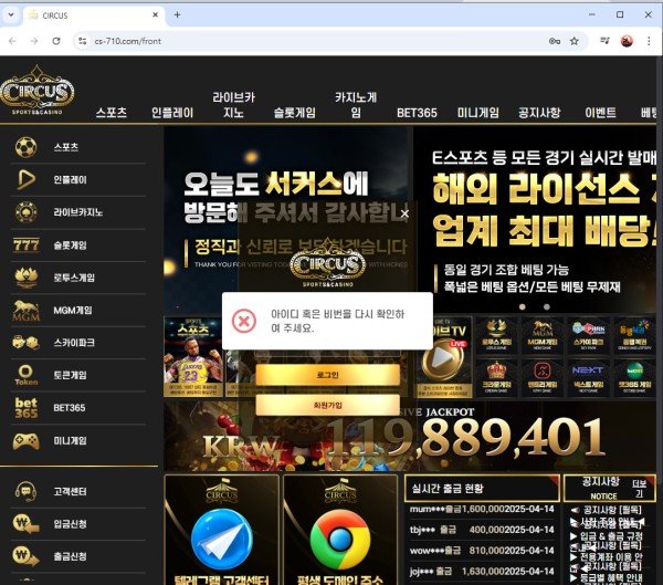 서커스 58만원 먹튀 사칭쓰레기들