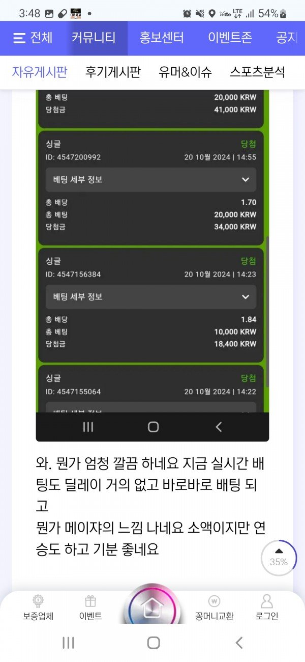 벨라벳 후기 작성자 정보 호일토 작성 작성일 2024.10.20 15:49 컨텐츠 정보 218 조회 목록 본문 와. 뭔가 엄청 깔끔 하네요 지금 실시간 배팅도 딜레이 거의 없고 바로바로 배팅 되고 뭔가 메이쟈의 느낌 나네요 소액이지만 연승도 하고 기분 좋네요 관련자료 이전 판도라 후기 작성일 2024.10.20 17:34 다음 판도라 후기 작성일 2024.10.20 15:47 댓글 0 등록된 댓글이 없습니다. Select File Upload File 목록