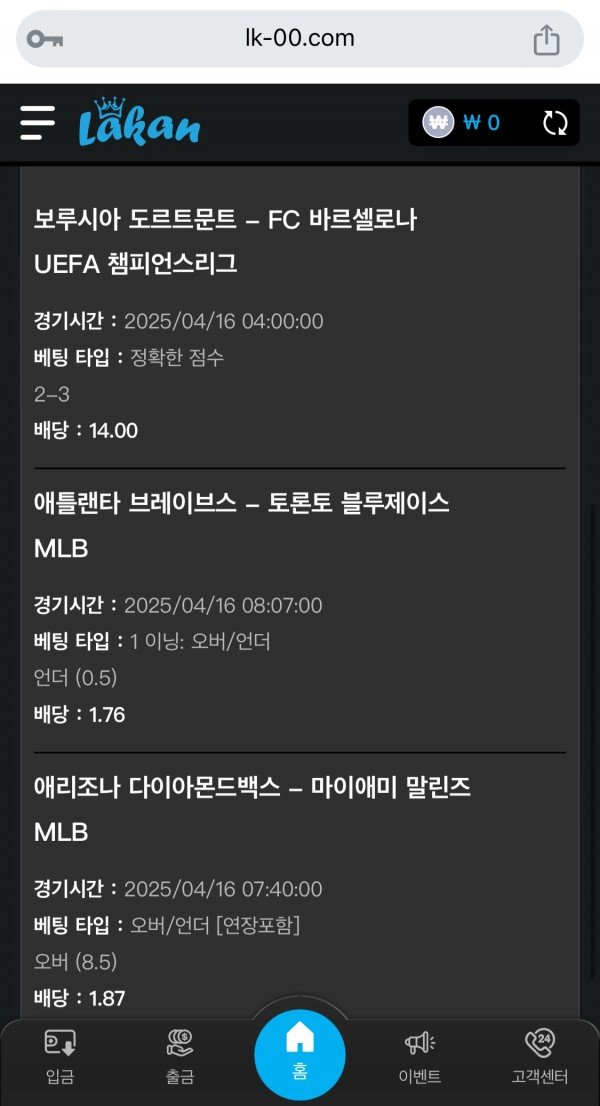 라칸 후기 작성자 정보 pxxn 작성 작성일 2025.04.15 23:30 컨텐츠 정보 50 조회 목록 본문 충환 시스템 깔끔하고 좋습니다 무엇보다 라칸이 특별한게 해외 실시간 배당율 시스템이 있어서 베터들한테는 너무 좋아요 너무 맘에듭니다. 관련자료 이전 Funx12후기 작성일 2025.04.16 00:03 다음 텐텐벳후기 작성일 2025.04.15 13:39 댓글 0 등록된 댓글이 없습니다. Select File Upload File 목록